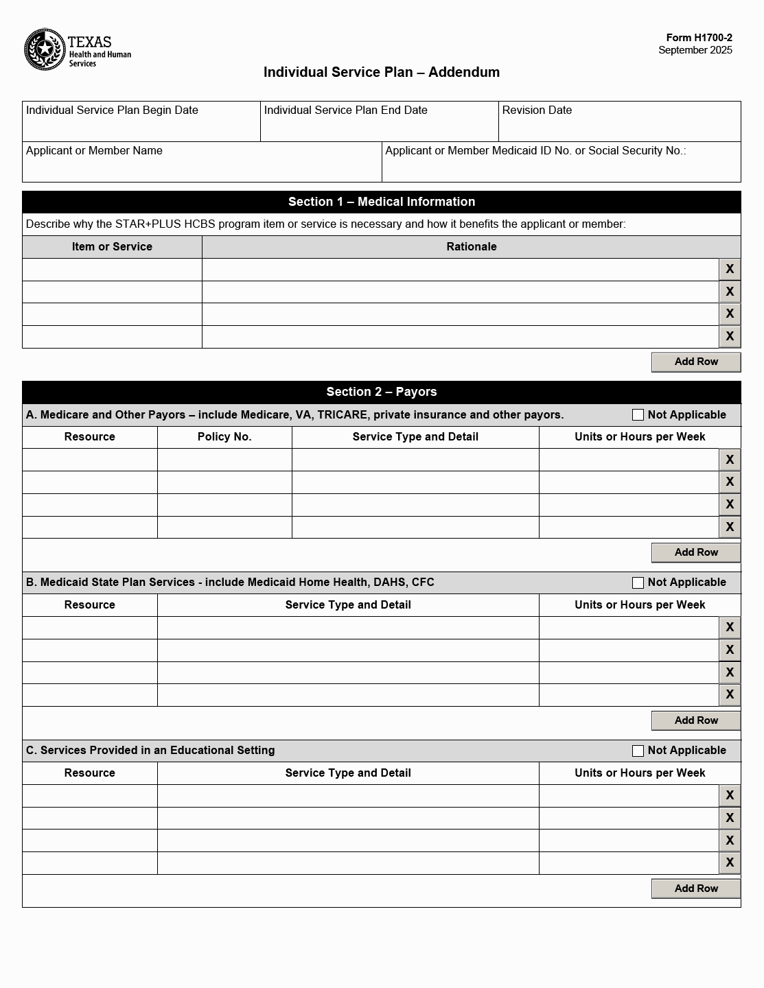 TX HHS Form H1700-2. Individual Service Plan Addendum