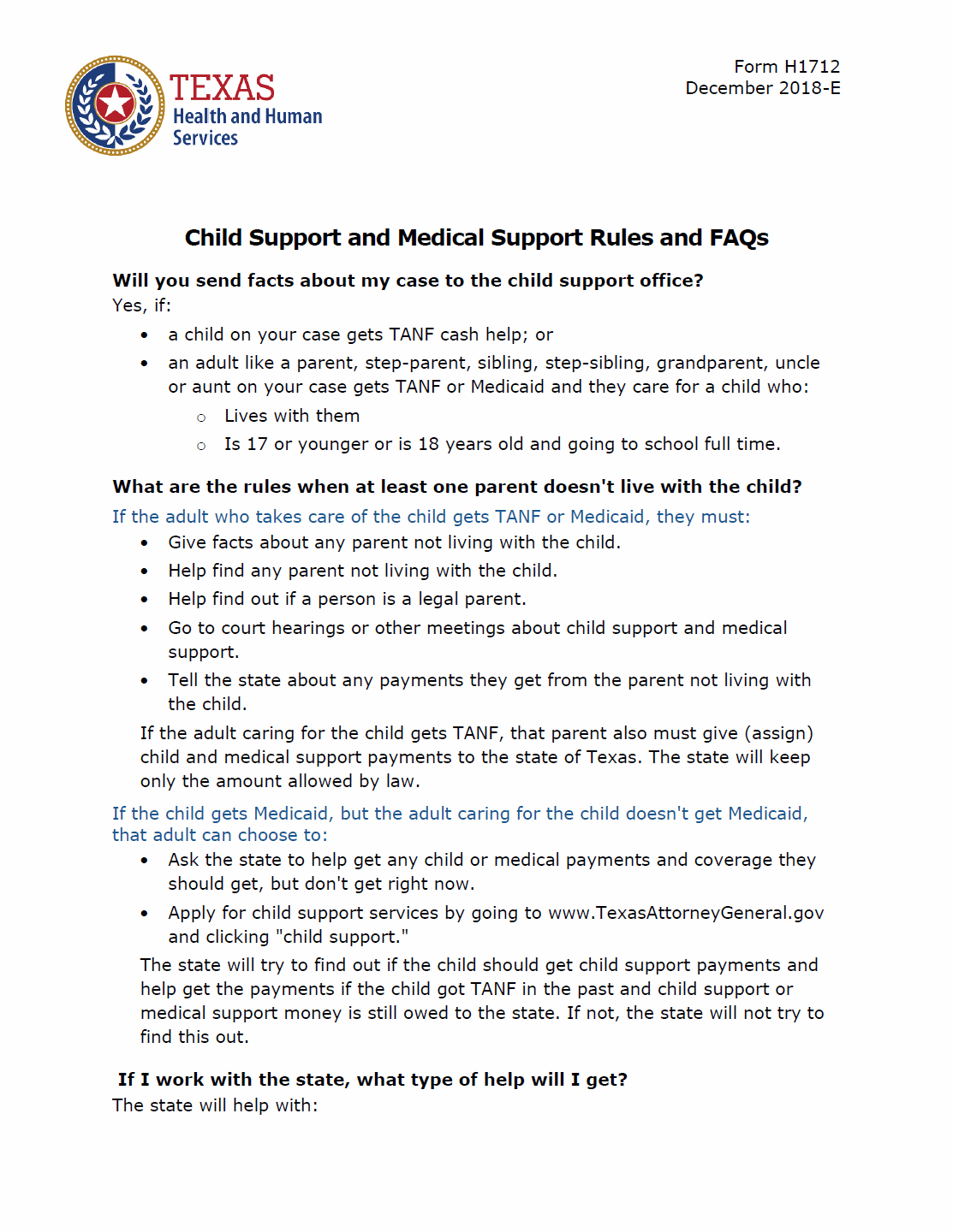 TX HHS Form H1712. Explanation of Child. Medical Support. Family Violence and Good Cause
