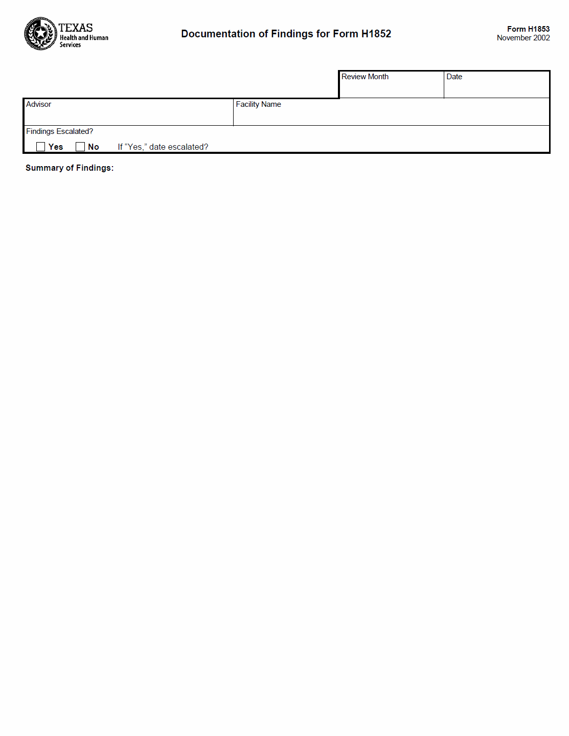 TX HHS Form H1853. Documentation of Findings for Form H1852