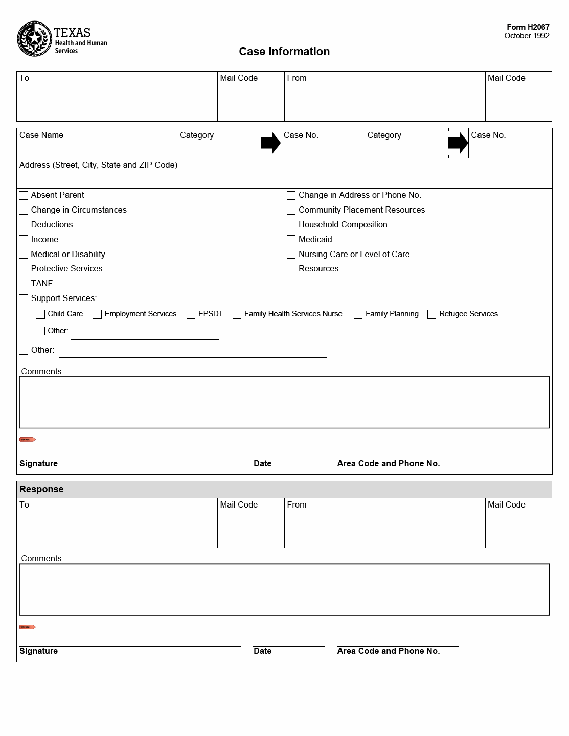 The TX HHS Form H2067, Case Information, helps social workers and case managers track essential details about individuals receiving services from Texas Health and Human Services (HHS). This form is typically used in situations where a change in circumstances or address requires updates to an individual's case information.