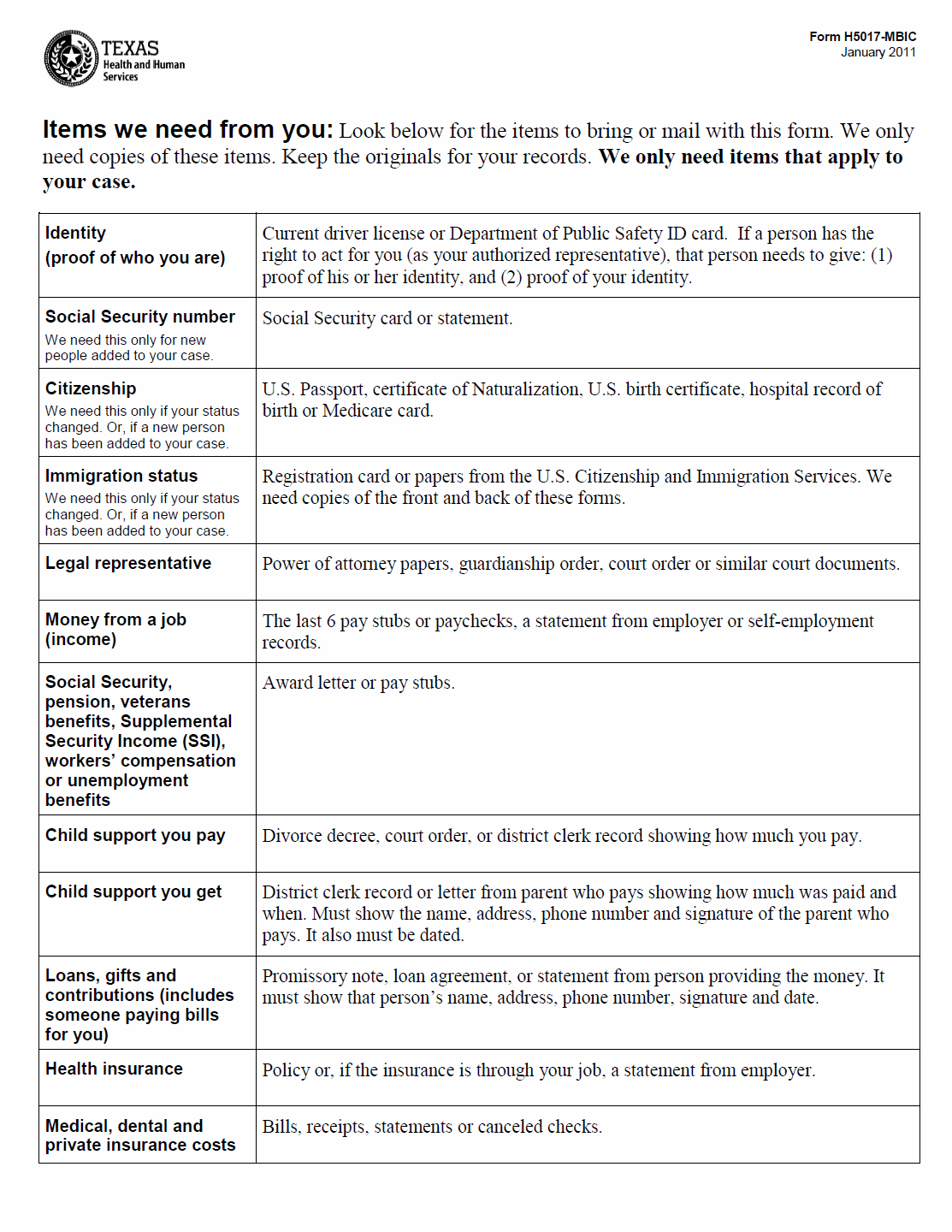The TX HHS Form H5017-MBIC, "Items We Need from You," is a crucial document that helps individuals provide necessary information to the Texas Health and Human Services (HHS) agency. This form is typically used in situations where an individual needs to update their case information or add new family members.
