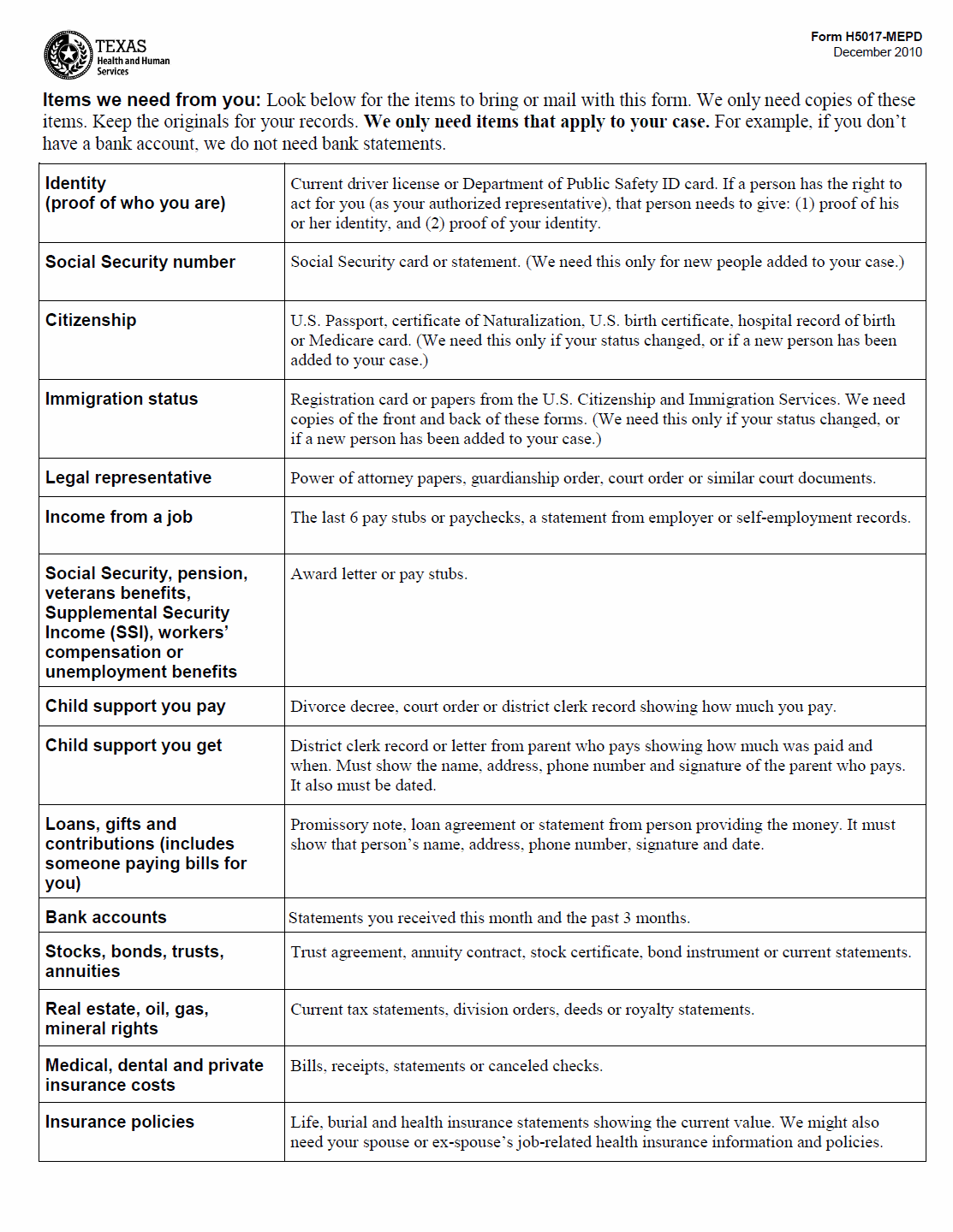 The TX HHS Form H5017-MEPD, "Items We Need from You", is a crucial document that helps individuals provide essential information to support their case with Texas Health and Human Services (HHS). This form is typically used in situations where individuals need to provide proof of identity, income, or other relevant details.