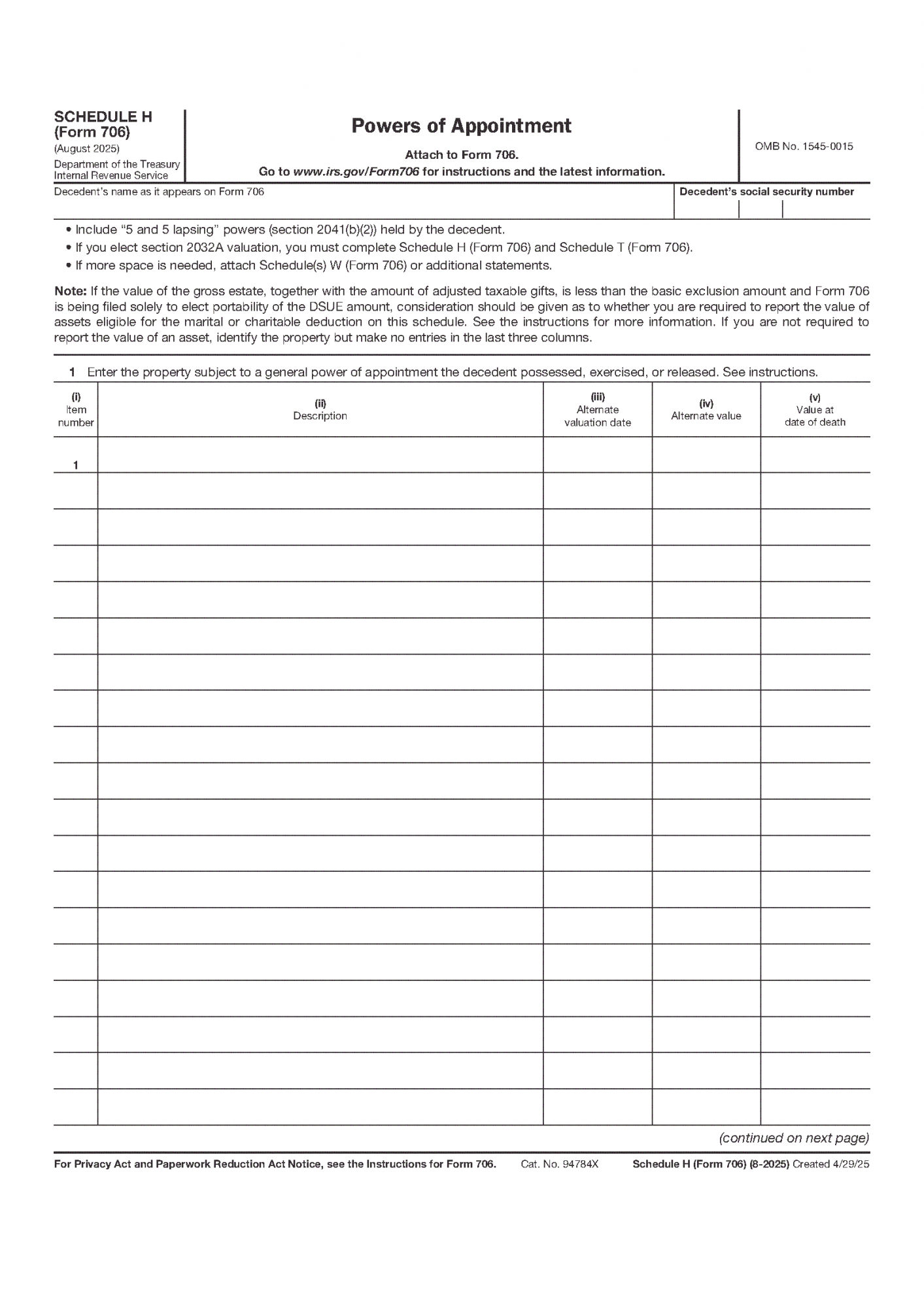Powers of appointment are included in the Form 706 process when the decedent held legal authority to designate who would receive certain property interests. Within the estate tax system, these powers are treated as a form of control rather than ownership, and their existence at death can cause property to be included in the gross estate even if the decedent never held title to the assets.