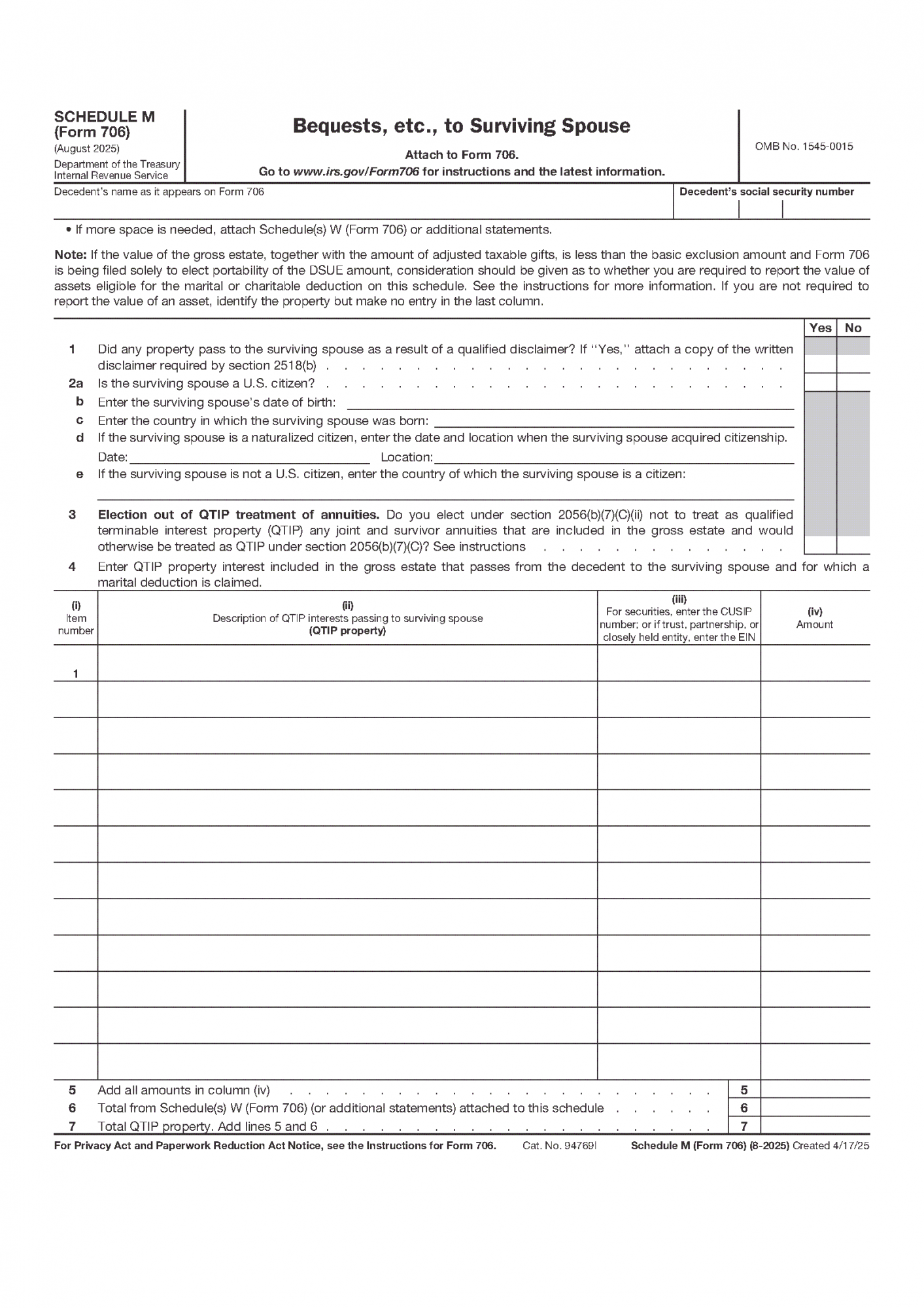 The marital deduction becomes part of the Form 706 process when property interests pass from the decedent to a surviving spouse in a manner recognized by the federal estate tax system. This deduction reflects the system’s treatment of spousal transfers as deferred rather than immediately taxable, allowing property to move to the surviving spouse without estate tax at the first death when statutory conditions are met.